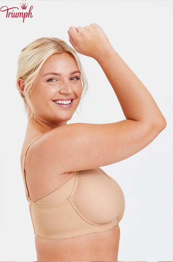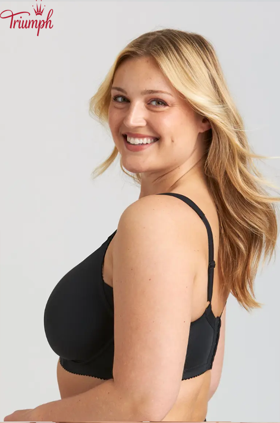 O soutien é invisível sob a roupa graças aos seus bojos sem costuras. As costas extra largas, combinadas com aro, proporcionam um excelente suporte e sustentação.