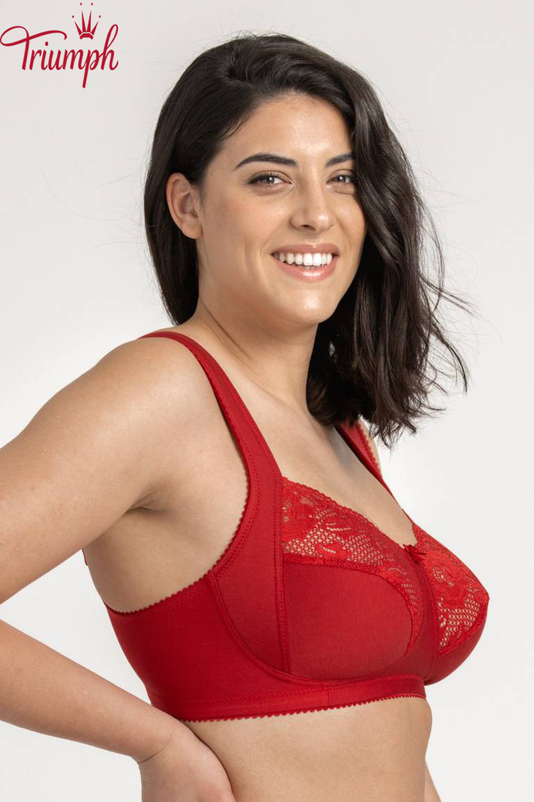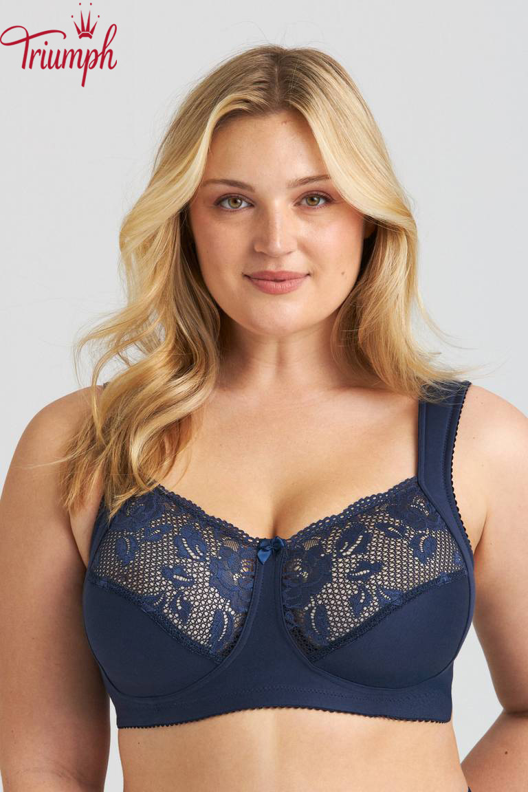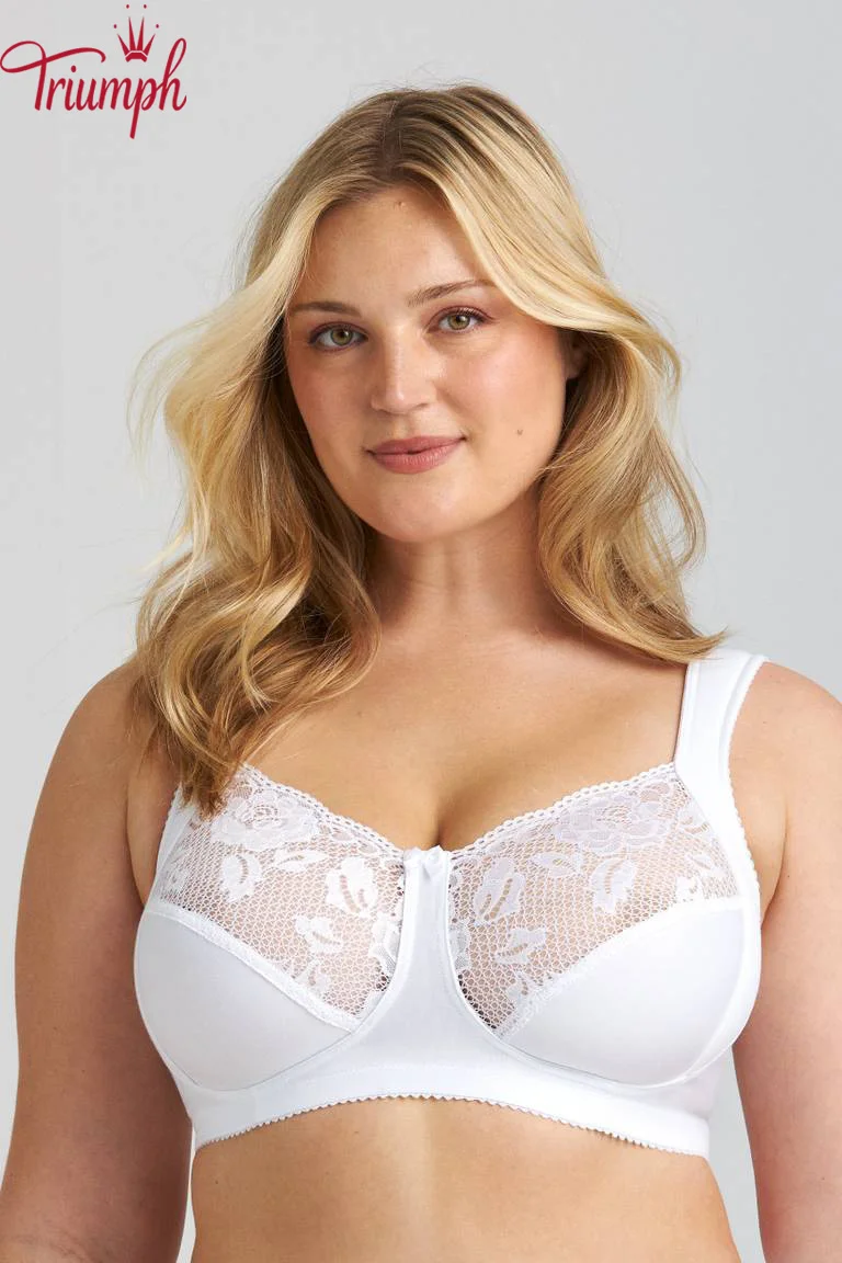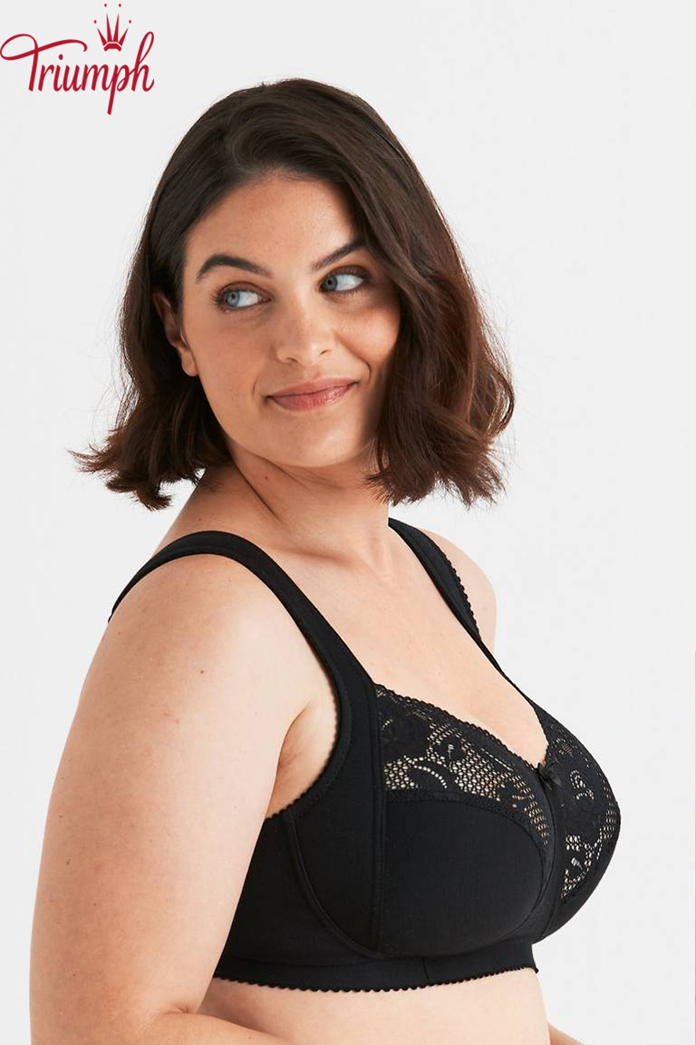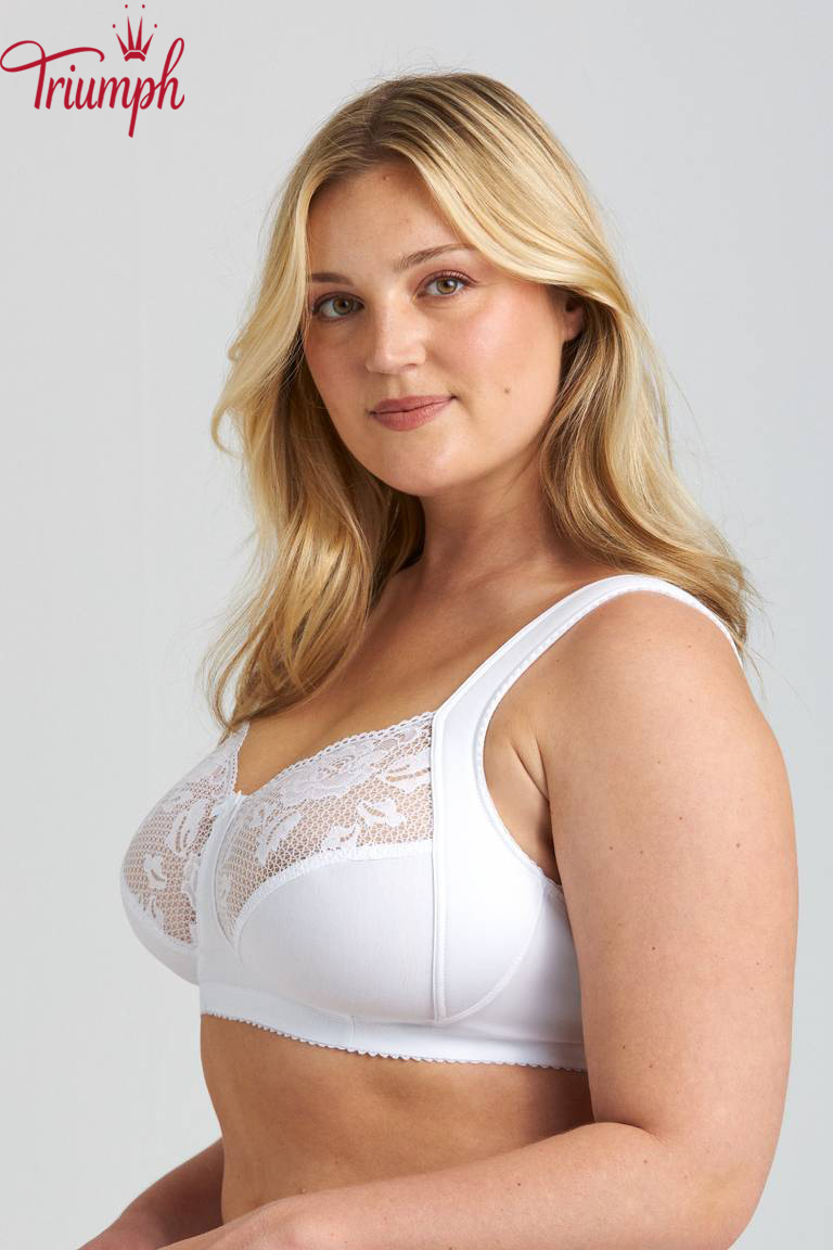 Este soutien sem armação é tão confortável que quase se vai esquecer que o está a usar. Lovely Lace é um dos seus favoritos, um sucesso de vendas ano após ano! O seu design de copa cheia, com aros laterais acolchoados e renda elástica, ajusta-se perfeitamente, centrando o busto e levantando-o suavemente. Possui também alças acolchoadas, ajustáveis e confortáveis. A parte traseira elástica possui um fecho ajustável de colchete.