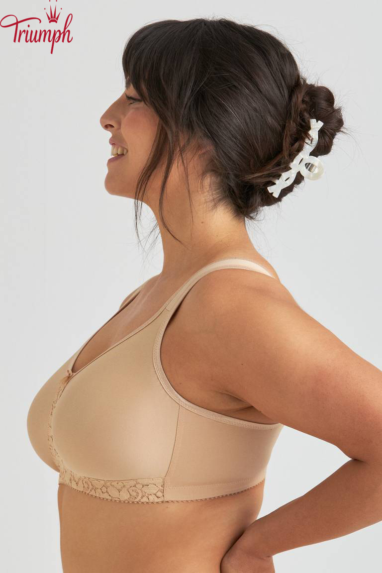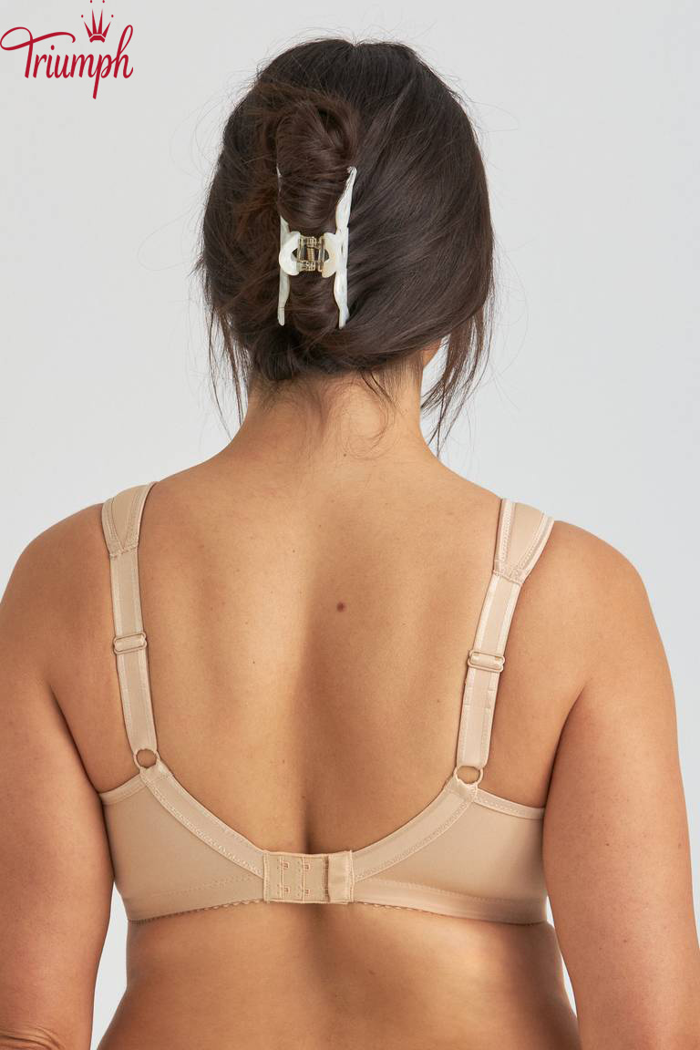 Este soutien com armação é fabricado com o material funcional Keep Fresh, que mantém a pele seca e fresca, mesmo em climas quentes. O material é respirável, elástico e macio, proporcionando conforto durante todo o dia. Os bojos anatómicos e sem costuras tornam o soutien invisível sob a roupa. A barra elevada Ergo Front™ oferece um excelente conforto, principalmente quando se está sentado. As alças largas, acolchoadas e ajustáveis evitam a fricção e aliviam a pressão nos ombros. As costas extralargas em forma de U possuem fecho de colchetes.